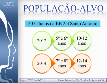 Para a definição do diagnóstico de saúde e a priorização de necessidades (2012/2013), seguindo os procedimentos éticos, aplicou-se ao 5º e 6º ano, um questionário adaptado do Health Hehaviour in School-ages Children (Comportamentos de saúde das crianças em idade escolar) e validado para a população portuguesa.